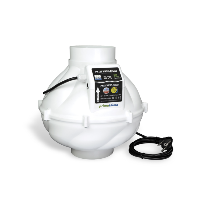 Optimiza tu entorno de cultivo con el PrimaKlima Whisperblower ECBlue Ø125mm. Este ventilador ofrece una combinación inigualable de silencio y eficiencia, diseñado para satisfacer sin esfuerzo las altas demandas de tiendas de cultivo y sistemas profesionales. Con un flujo de aire ajustable de 0 a 800 m³/h, la conveniente conexión RJ45 y la compatibilidad con controladores digitales, tienes garantizada una solución de ventilación fiable y flexible.
